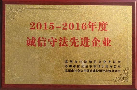 2018年4月24日,開信精工獲得由蘇州市經(jīng)濟(jì)和信息化委員會(huì)、蘇州市依法治市領(lǐng)導(dǎo)小組辦公室、蘇州市社會(huì)信用體系建設(shè)領(lǐng)導(dǎo)小組聯(lián)合頒發(fā)的“誠信守法先進(jìn)企業(yè)”銅牌。